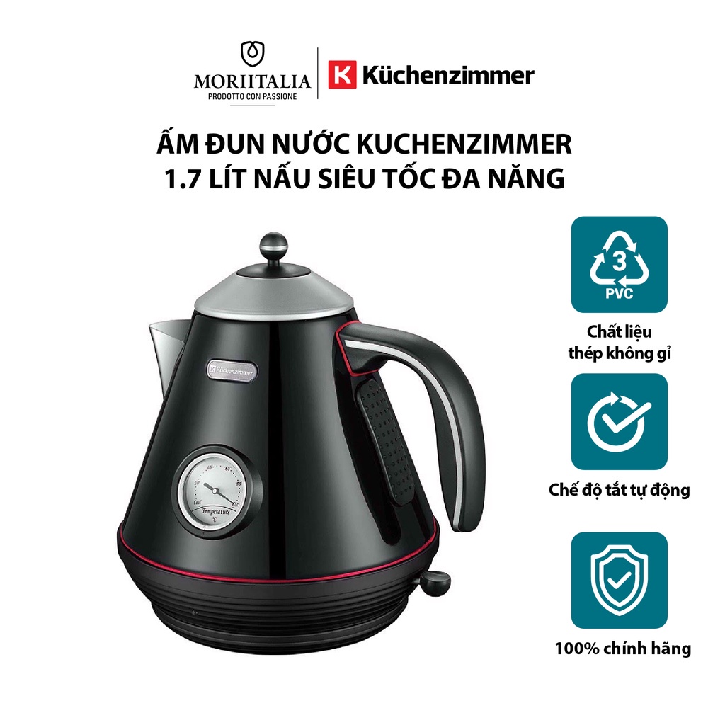 Ấm Đun Nước Kuchenzimmer 1.7 lít nấu siêu tốc đa năng màu đen Moriitalia 3000235Kuchenzimmer là chuyên gia lĩnh vực về đồ điện gia dụng, phục vụ căn bếp của nhà bạn thêm phần hiện đại và tiện ích. Hoàn hảo về thiết kế và tiện lợi khi vệ sinh sản phẩm