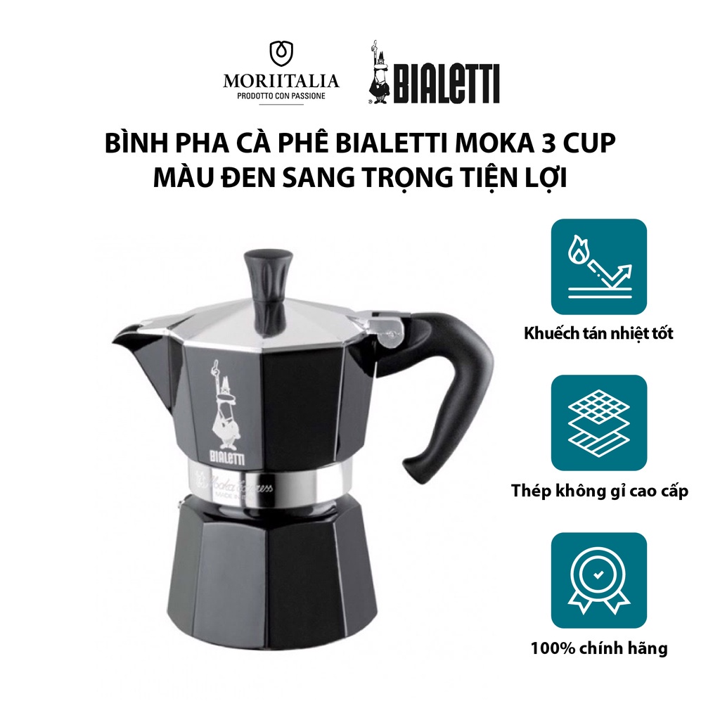 Nhà cửa & Đời sống > Dụng cụ nhà bếp > Dụng cụ pha trà, cà phê || [Mã BMBAU300 giảm 7% đơn 499K] Bình pha cà phê Bialetti Moka 3 cup màu đen sang trọng tiện lợi Moriitalia 0004952Còn hàng
