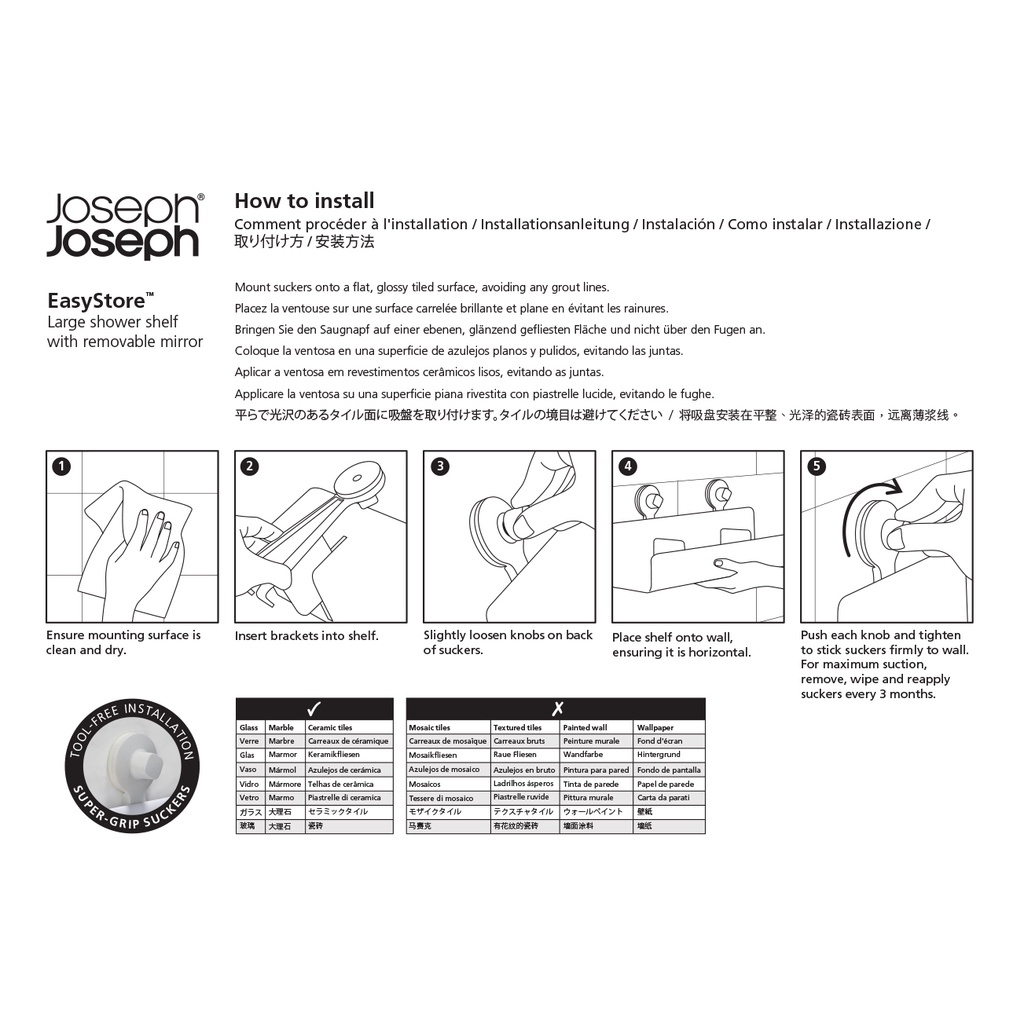 - Dễ dàng lắp đặt không cần dụng cụ bằng cách sử dụng mút siêu bám