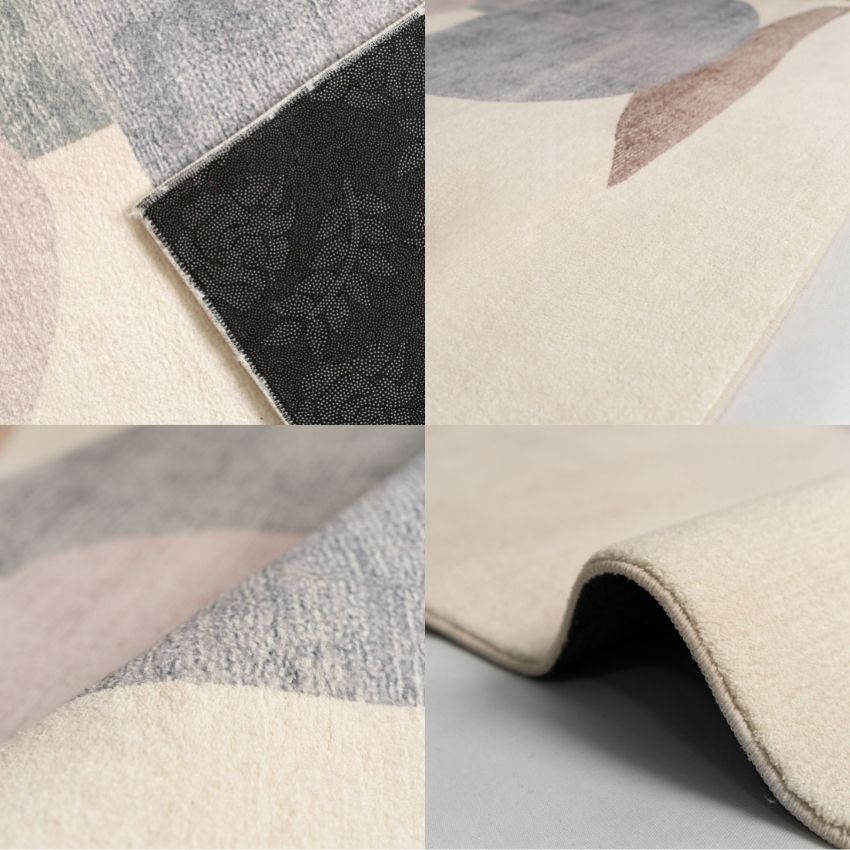 Chất liệu: Mặt trên: 100% Polypropylene. Mặt đáy: PVC phủ hạt chống trơn trượt