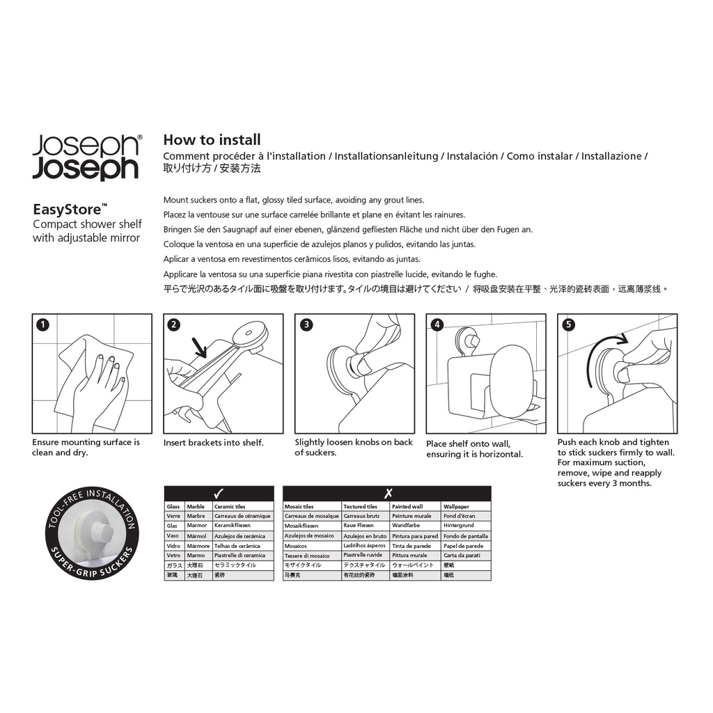 - Dễ dàng lắp đặt không cần dụng cụ bằng cách sử dụng mút siêu bám