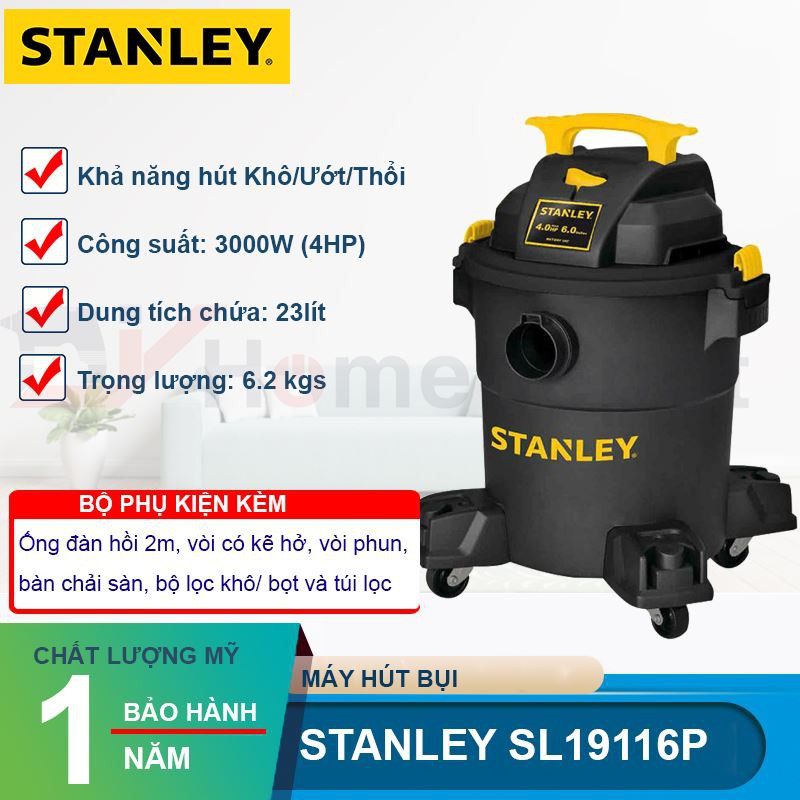 Thiết Bị Điện Gia Dụng > Thiết bị điện gia dụng nhỏ > Máy hút bụi & Thiết bị làm sạch sàn || [Mã BMBAU200 giảm 200K đơn 699K] Máy hút bụi công nghiệp khô và ướt Stanley SL19116PCòn hàng