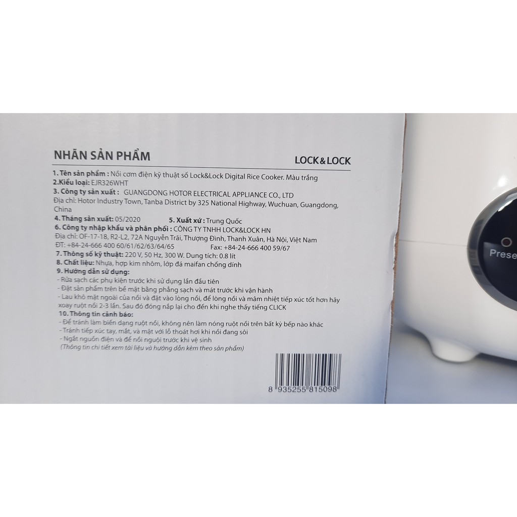 Thương hiệu: Lock&Lock | Xem thêm các sản phẩm Nồi cơm điện của Lock&LockMô tả ngắn