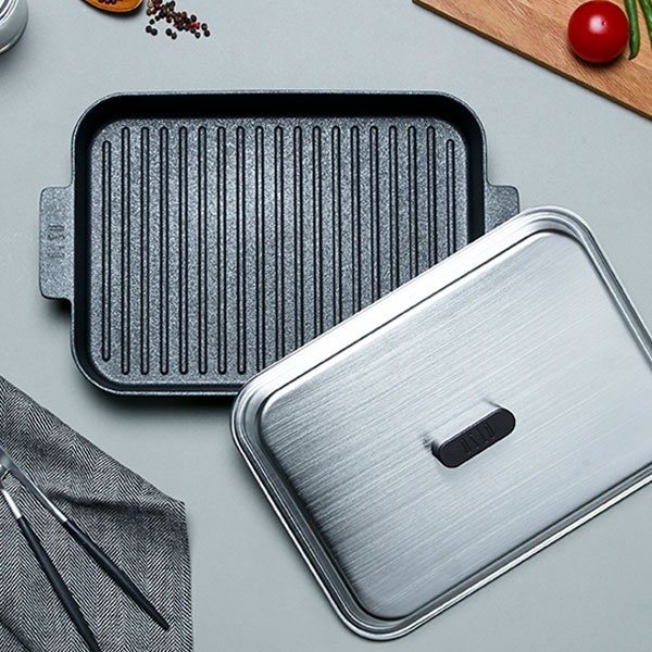 Chảo nướng chống dính nhôm đúc kèm nắp inox Oslo Fjord Hàn Quốc, Kích thước 21x29cm