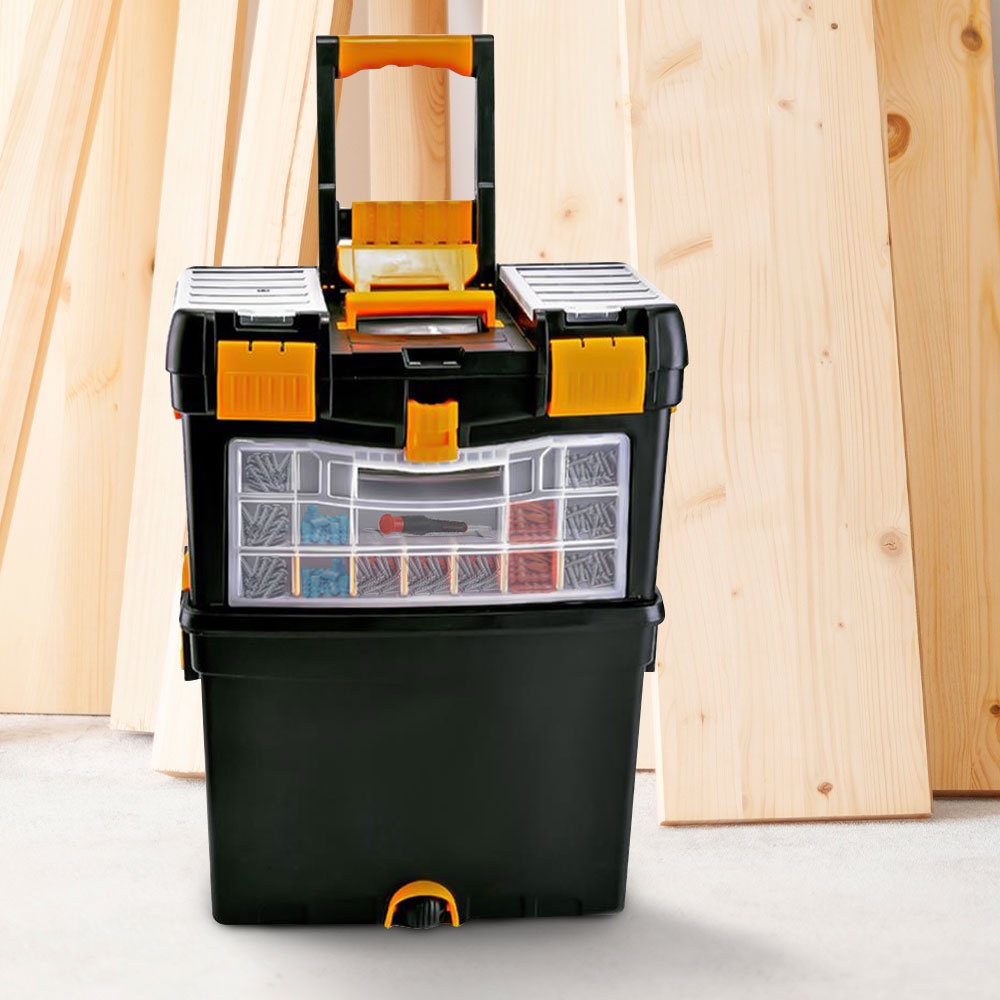 Nhà cửa & Đời sống > Dụng cụ & Thiết bị tiện ích > Dụng cụ > Hộp dụng cụ cầm tay || HomeBase MATALL Thùng đựng dụng cụ bằng nhựa có bánh xe Thái Lan W44xH62xD22cm màu đenCòn hàng