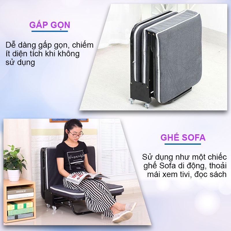 Giường chỉ cần lắp bánh xe vào, kéo ra là có thể sử dụng ngay, tiện lợi, không tốn công lắp đặt.