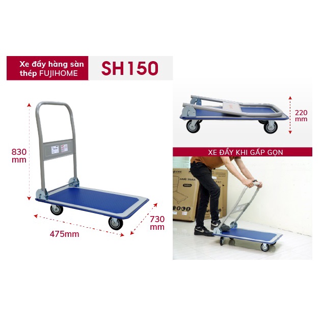 Nhà cửa & Đời sống > Dụng cụ & Thiết bị tiện ích > Xe đẩy || [Mã BMBAU200 giảm 200K đơn 699K] Xe đẩy hàng sàn thép Fujihome SH150 - Tải trọng 100Kg - Bảo hành chính hãng 12TCòn hàng