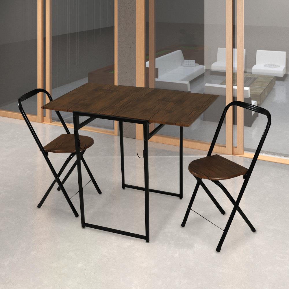HomeBase FURDINI Bộ bàn ghế (2 ghế) gỗ khung thép có thể xếp gọn