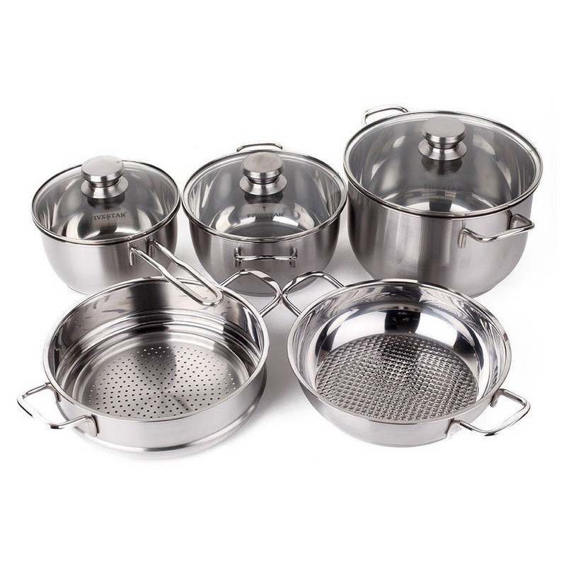 Nhà cửa & Đời sống > Dụng cụ nhà bếp > Nồi || [Mã BMLT200 giảm 10% đơn 699K] Bộ nồi inox 403 FiveStar 5 món gồm 2 nồi 1 chảo, 1 xửng hấp và 1 quánh - FS08CG1Còn hàng