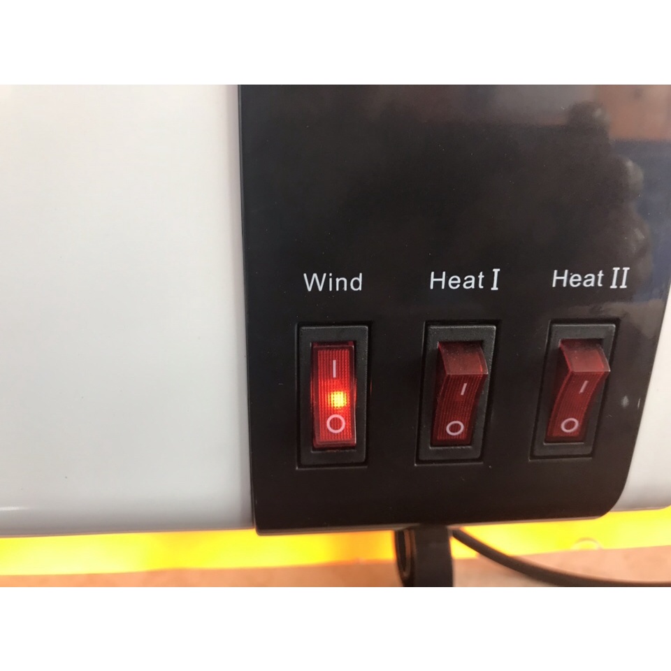 Khi bật công tắc 2 và 3, bộ phận gia nhiệt bắt đầu hoạt động, quạt gió thổi sẽ tạo ra không khí nóng cho người sử dụng.