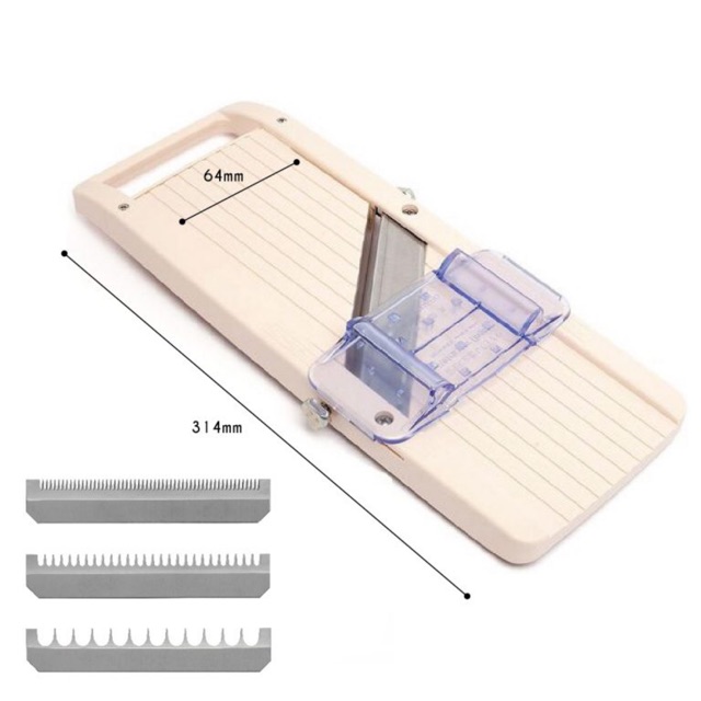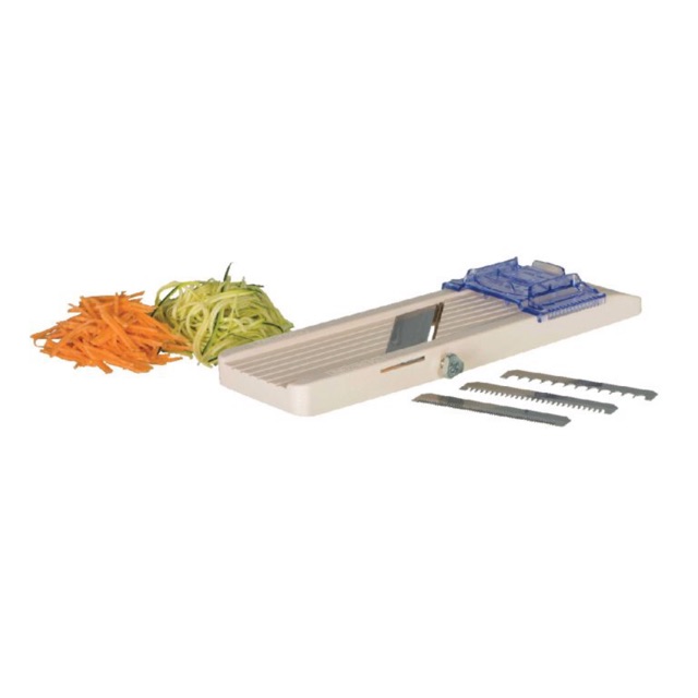Bộ sản phẩm bao gồm: 1 thân bào, 3 lưỡi dao cắt sợi, 1 lưỡi bào mỏng và miếng bảo vệ tay.