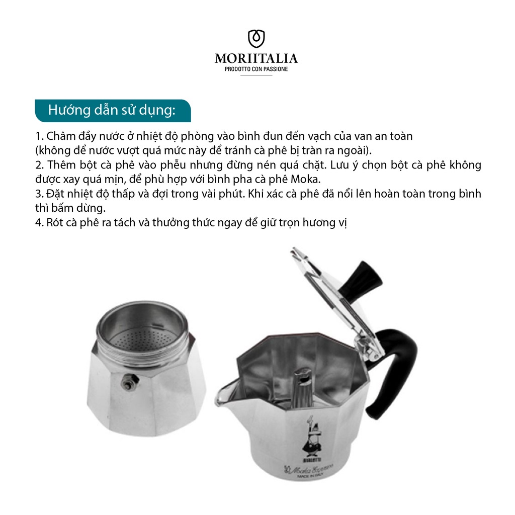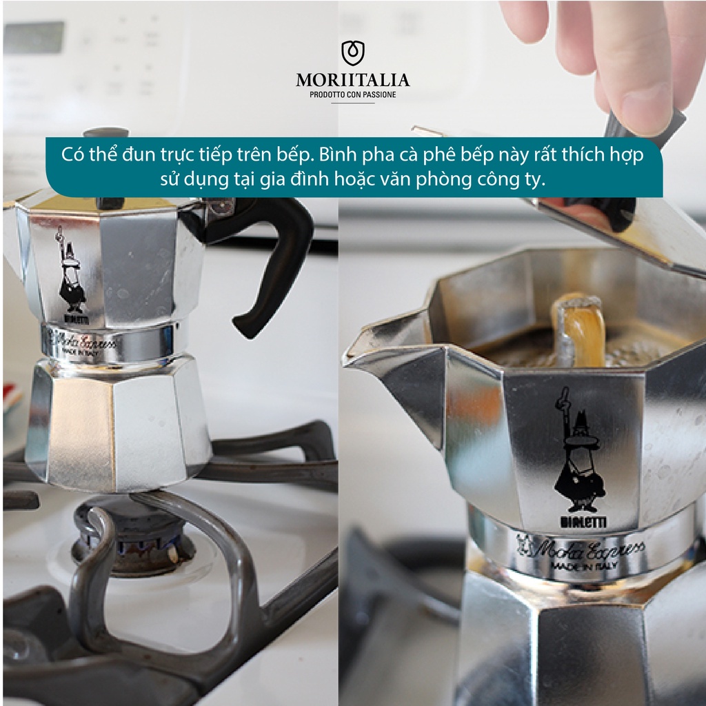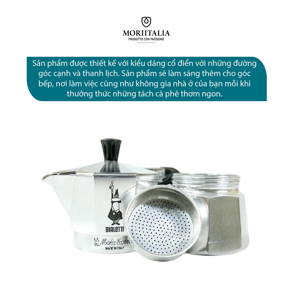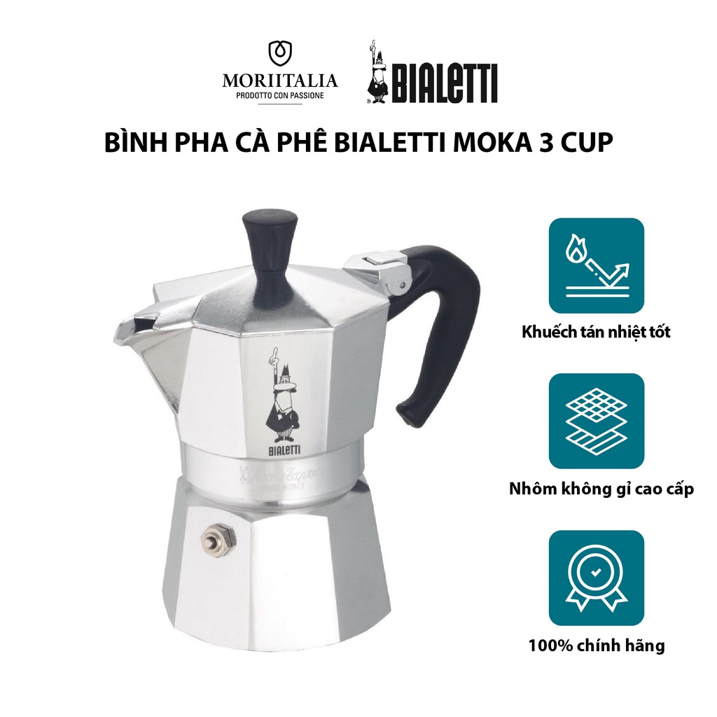 Bình pha cà phê Bialetti chính hãng 100% xuất xứ Ý, Moka 3 cup, chất liệu nhôm cao cấp Moriitalia 990001162