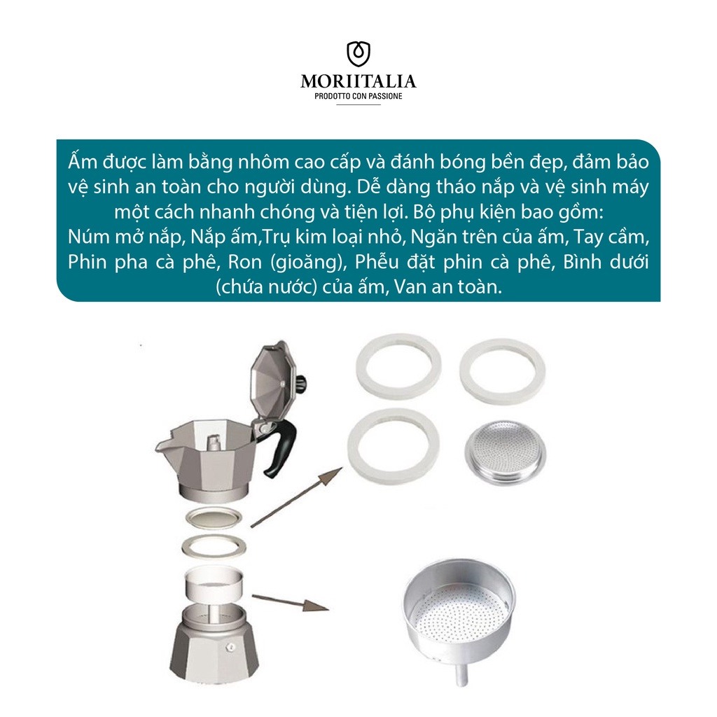 Giới thiệu Bình pha cà phê Bialetti chính hãng 100% xuất xứ Ý, Moka 3 cup, chất liệu nhôm cao cấp Moriitalia 990001162