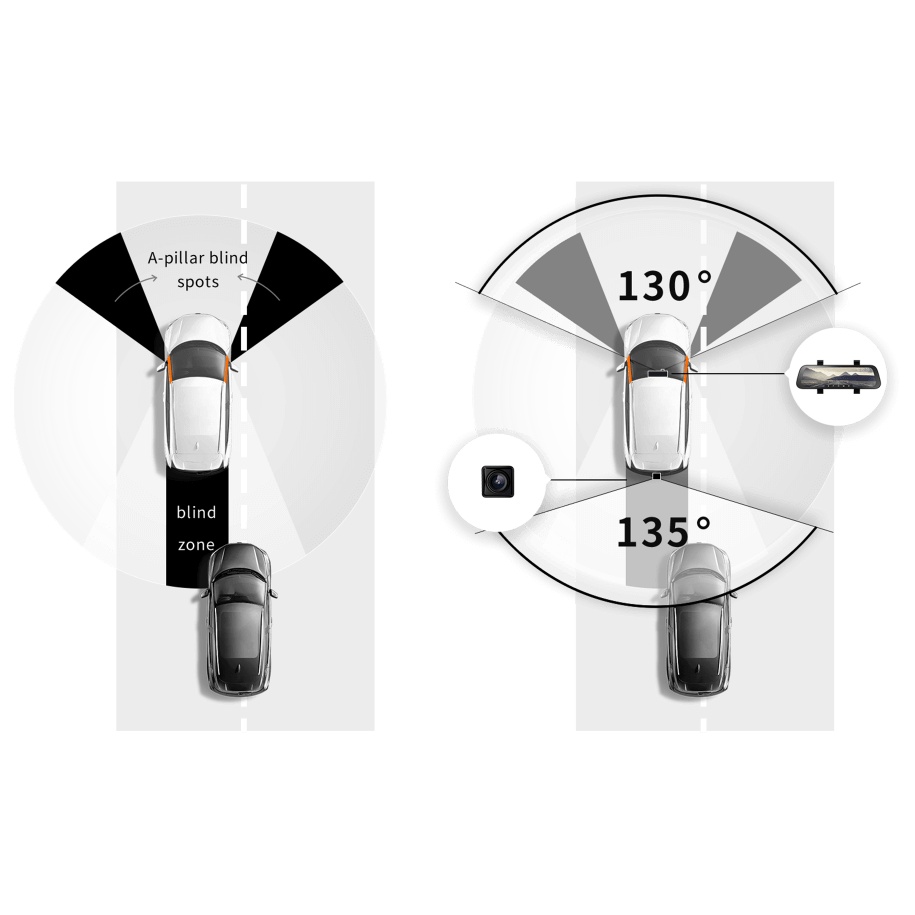 Góc quay cam trước Camera gương 70mai: 130º