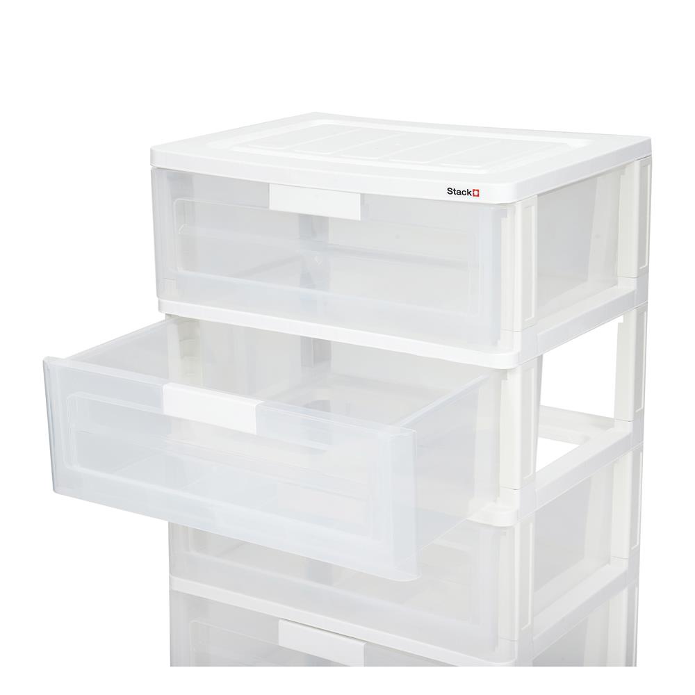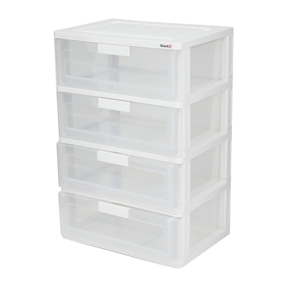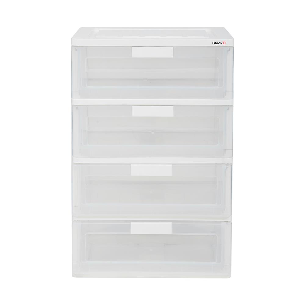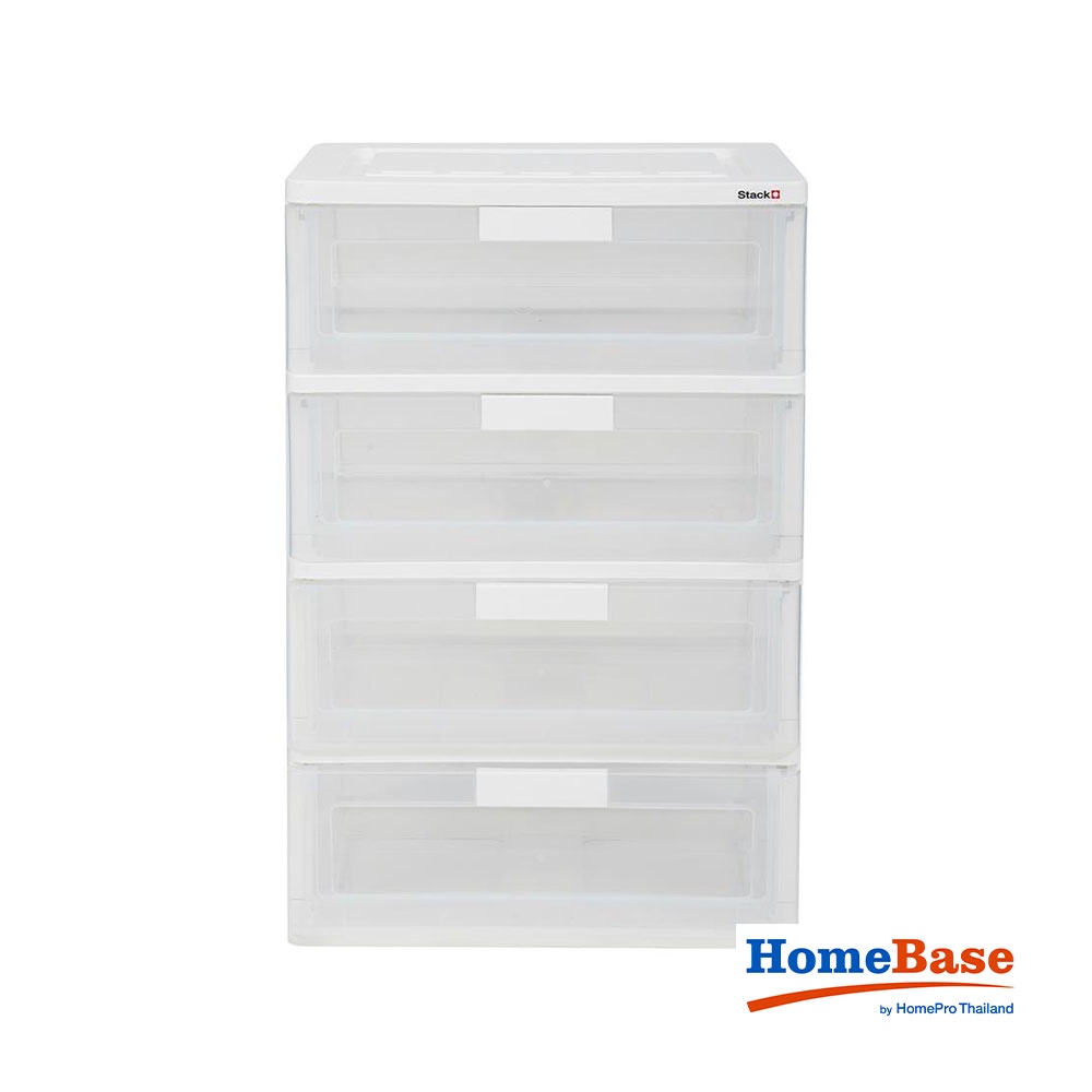 HomeBase STACKO Tủ nhựa 4 tầng Size L Thái Lan R58.5xS41xC88cm màu trắng trong