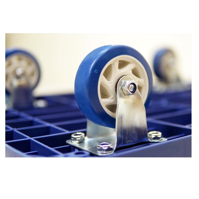 - Phần khớp nối bằng thép dầy và cứng cấp, bánh xe nhựa tổng hợp PP+PU đường kính 100mm chất lượng tốt hơn loại khác. Chất liệu này có nhiều ưu điểm như chịu được tải trọng cao, bền, không tạo ra vết bẩn trên sàn, không bị ăn mòn hoá chất, tạo ra tiếng ồn thấp khi vận hành, không độc hại, không gây ô nhiễm môi trường và tái chế được.