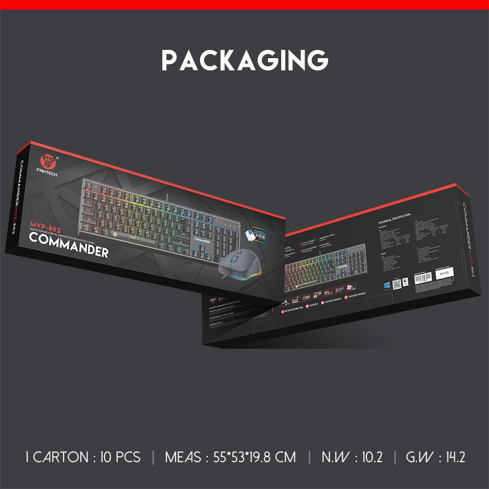 Máy tính & Laptop > Chuột & Bàn Phím > Bàn Phím Máy Tính || [Mã BMLT200 giảm 10% đơn 699K] Combo bàn phím cơ + chuột chơi game, Led RGB, Blue Switch Fantech MVP 862Còn hàng