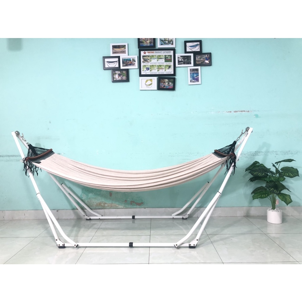 Bộ võng xếp du lịch BAN MAI: khung sơn tĩnh điện và lưới mềm dày 99 gỗ 50cm