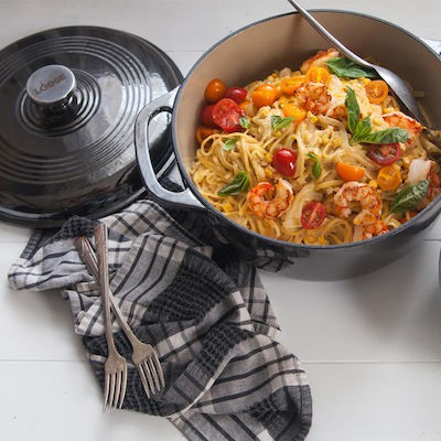 Nồi gang phủ men của Lodge được thiết kế hiện đại và tiện dụng cho tất cả mọi người, thích hợp cho các món ninh, hầm, súp.