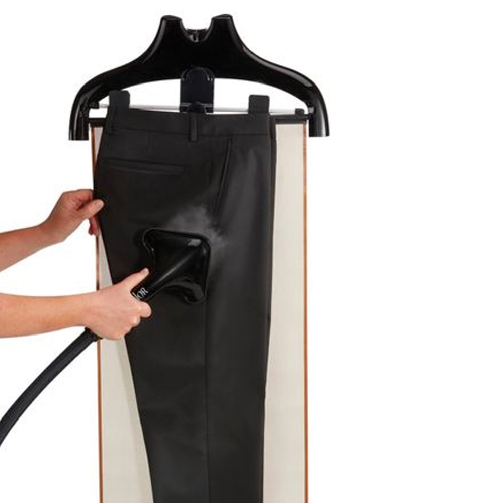 Có giá treo tiện lợi ủi đồ ngay trên móc với thiết kế phun thẳng đứng cho người dùng dễ dàng là phẳng mọi nếp nhăn mà không cần dùng đến cầu là quần áo