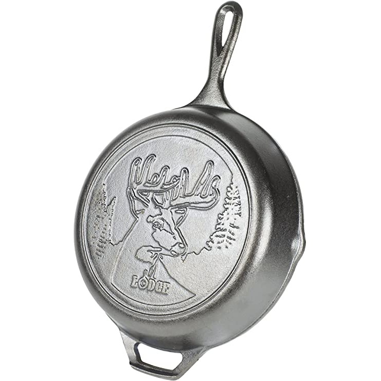 Chảo nằm trong bộ sưu tập Lodge Wildlife Series được sản xuất tại Mỹ với chất liệu gang đúc chất lượng cao và điểm nhấn ấn tượng là biểu tượng hình hươu dưới đáy.