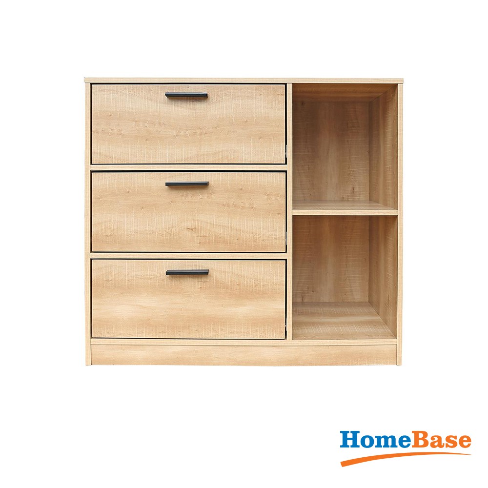 Nhà cửa & Đời sống > Nội thất > Tủ bếp || [Mã BMLT200 giảm 10% đơn 699K] HomeBase FURDINI Kệ tủ gỗ 3 ngăn LOFT style Thái Lan W90xD40xH80cm màu gỗ tếchCòn hàng