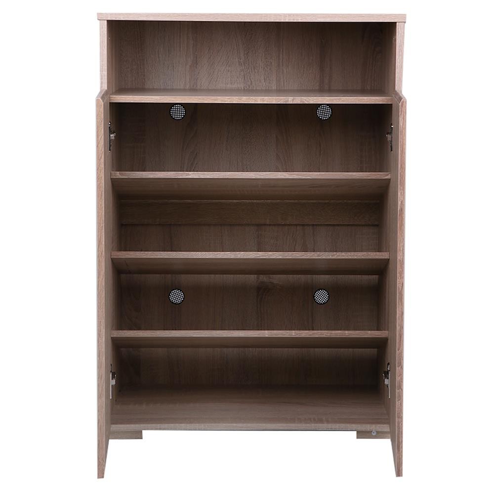 - Sản phẩm có 4 ngăn tủ, hai cành cửa có thể để được đến 15 đôi giày, dép