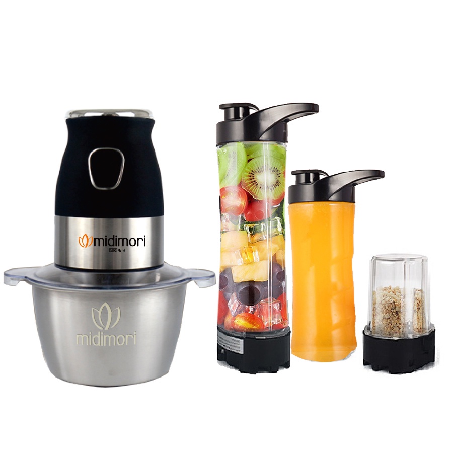 Máy Xay Sinh Tố Và Thực Phẩm Đa Năng Midimori MDMR-188 (500W) đến từ thương hiệu MIDIMORI VIỆT NAM là bộ sản phẩm gồm 4 cối bao gồm:- 1 cối xay thịt được làm bằng inox 304 bền bỉ theo thời gian với dung tích 1.8L có thể xay nhiều loại thực phẩm như thịt, cua, cá, rau củ quả…thậm chí là đá lạnh sang đá bào.