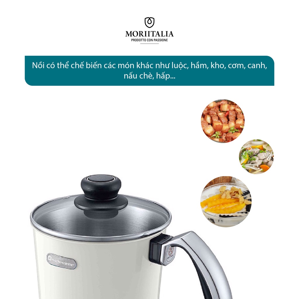 Giới thiệu [Mã BMBAU300 giảm 7% đơn 499K] Nồi điện Kuchenzimmer 1 lít nấu siêu tốc đa năng màu trắng Moriitalia 3000211
