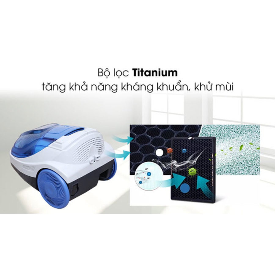 Thiết bị được trang bị công suất động cơ tối đa 1800W với màng lọc Nano Titanium giúp nhanh chóng làm sạch bụi, trả lại không gian trong lành. Đặc biệt, máy hút bụi Hitachi còn thiết kế thông minh với hộc chứa bụi có dung tích 1.6L đảm bảo thời gian sử dụng liên tục trong thời gian dài mà không cần đổ bụi.