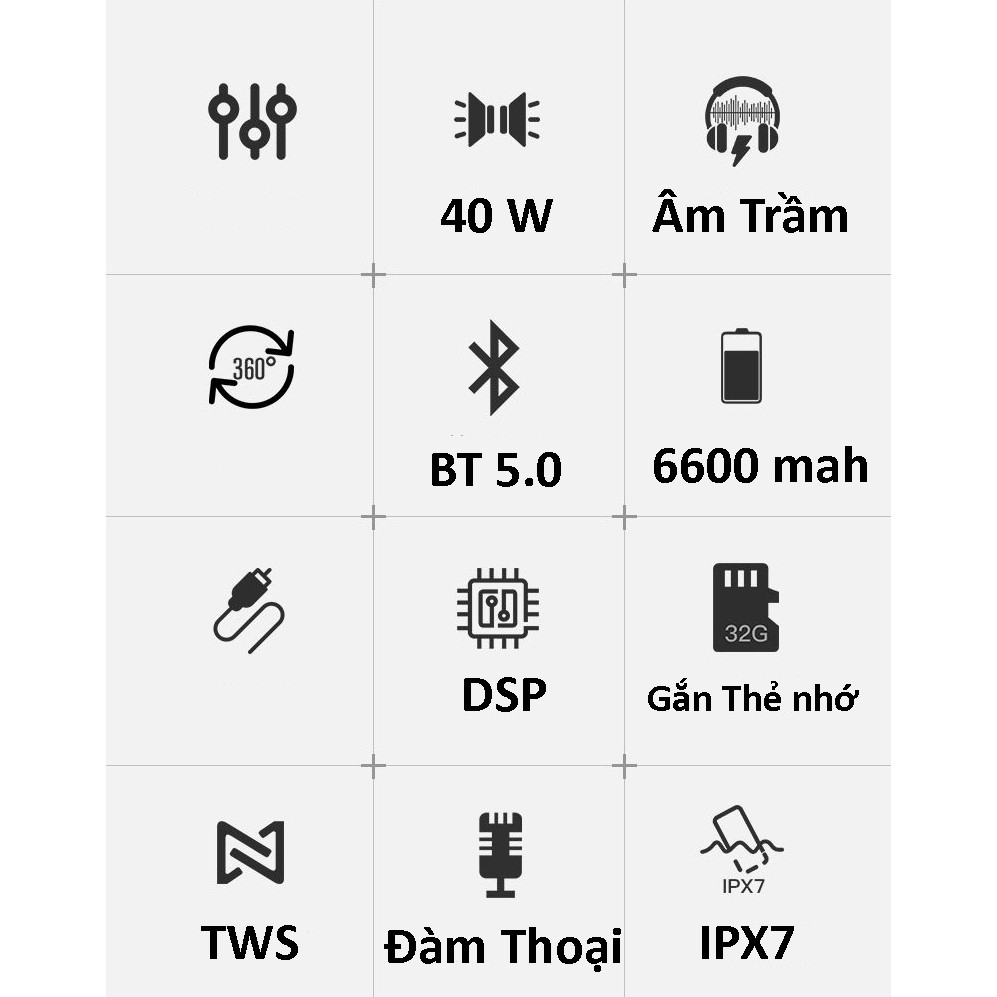 Thiết Bị Âm Thanh > Dàn âm thanh > Loa || [Mã ELHACE giảm 4% đơn 300K] Loa Bluetooth 40W công suất lớn Super Bass chống nước IPX7 pin 6600MAH DSPCòn hàng