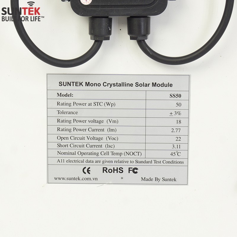 Thiết Bị Điện Gia Dụng > Pin || Tấm PIN năng lượng mặt trời SUNTEK Mono SS50 18V/50WCòn hàng