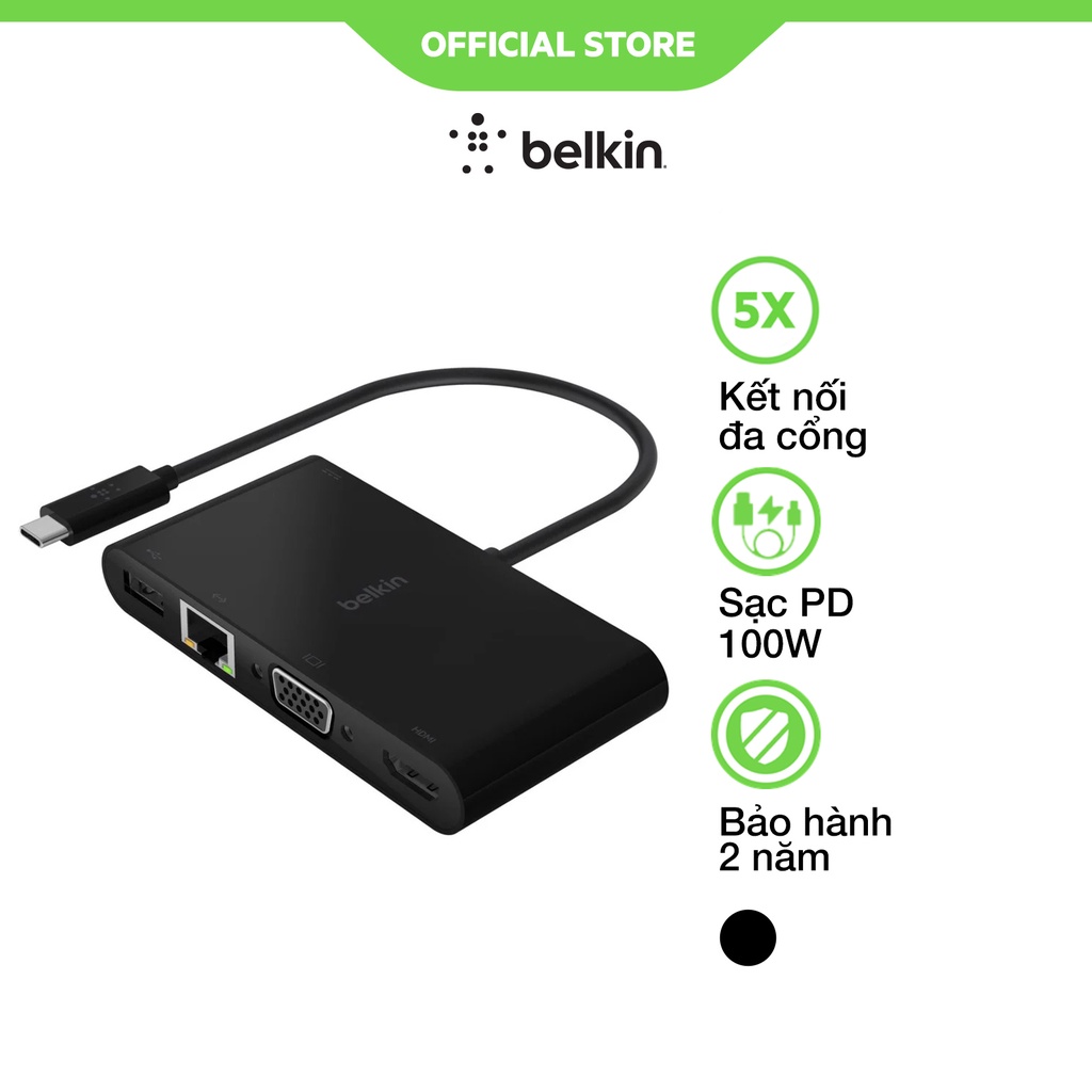 Cáp chuyển đổi USB Type C Multimedia 5in1 Belkin sạc PD 100W BH chính hãng 2 năm