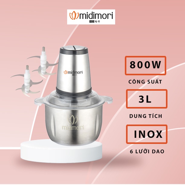 Giới thiệu [Mã ELHADEV giảm 4% đơn 300K] Máy xay thịt inox Midimori MDMR-800 (800W) - Tặng kèm 1 bộ lưỡi dao dự phòng
