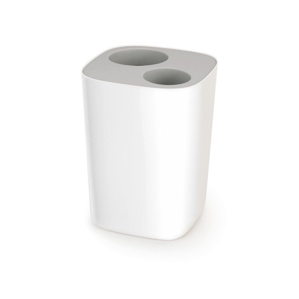 Thùng rác phòng tắm tiện dụng này có hai ngăn cho phép bạn phân loại rác thải và rác tái chế trong một thiết kế nhỏ gọn.