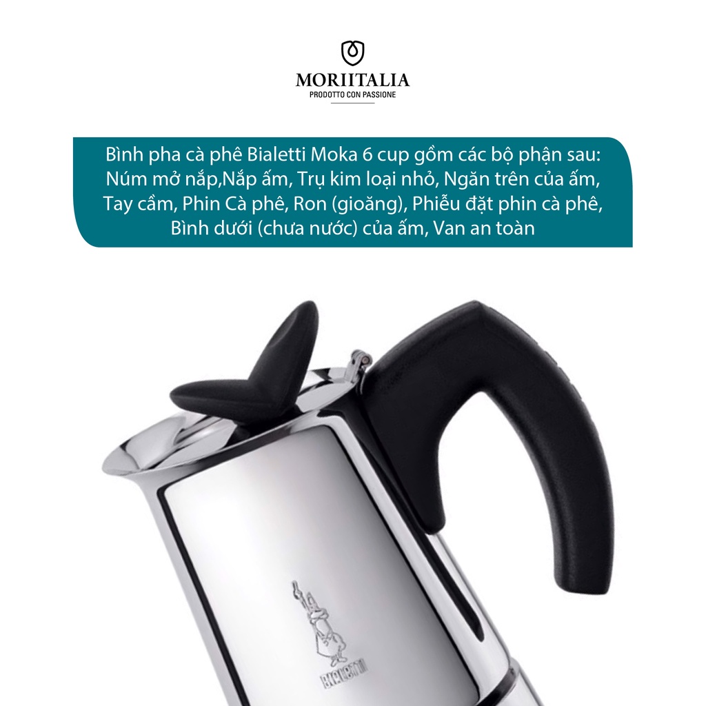 Bình pha cà phê Bialetti Moka 6 cup gồm các bộ phận sau: