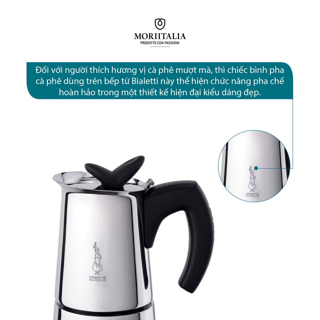 - Đối với người thích hương vị cà phê mượt mà, thì chiếc bình pha cà phê dùng trên bếp từ Bialetti này thể hiện chức năng pha chế hoàn hảo trong một thiết kế hiện đại kiểu dáng đẹp.