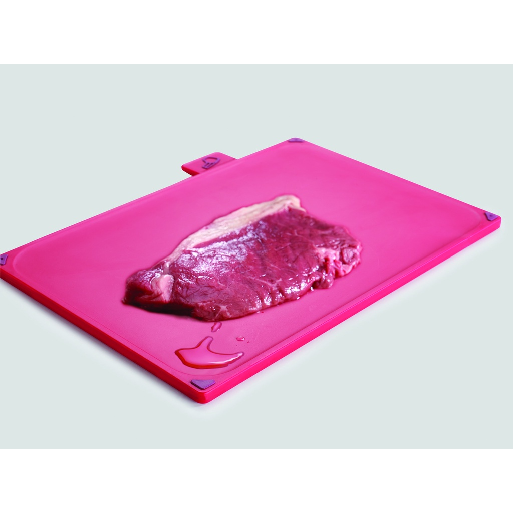 + Thớt đỏ : dùng để sơ chế thịt sống với các rãnh giúp ngăn nước từ thịt chảy ra mặt bàn.