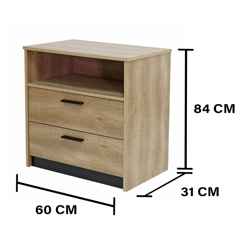 Đây là Chiếc tủ gỗ đa chức năng với hai ngăn kéo và một hộc chứa đồ; là thiết kế hoàn hảo cho phòng ngủ của bạn hoặc với bất kỳ không gian nào trong gia đình. Tủ gỗ 2 ngăn Loft có mặt trên rộng, có thể để các khung ảnh hoặc các vật trang trí nhỏ xinh. Thêm vào đó, 2 ngăn kéo cung cấp thêm không gian thoải mái để lưu trữ đồ đạc.- Làm bằng chất liệu gỗ ép