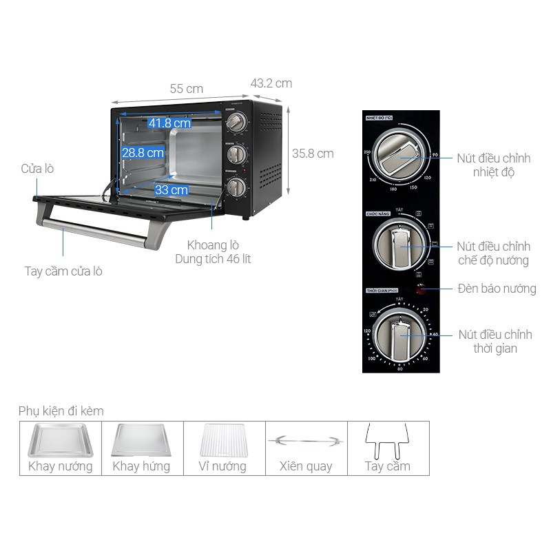 Thiết Bị Điện Gia Dụng > Đồ gia dụng nhà bếp > Lò nướng || [Mã BMLT300 giảm 10% đơn 499K] Lò nướng Sharp EO-B46RCSV-BK 46 lítCòn hàng