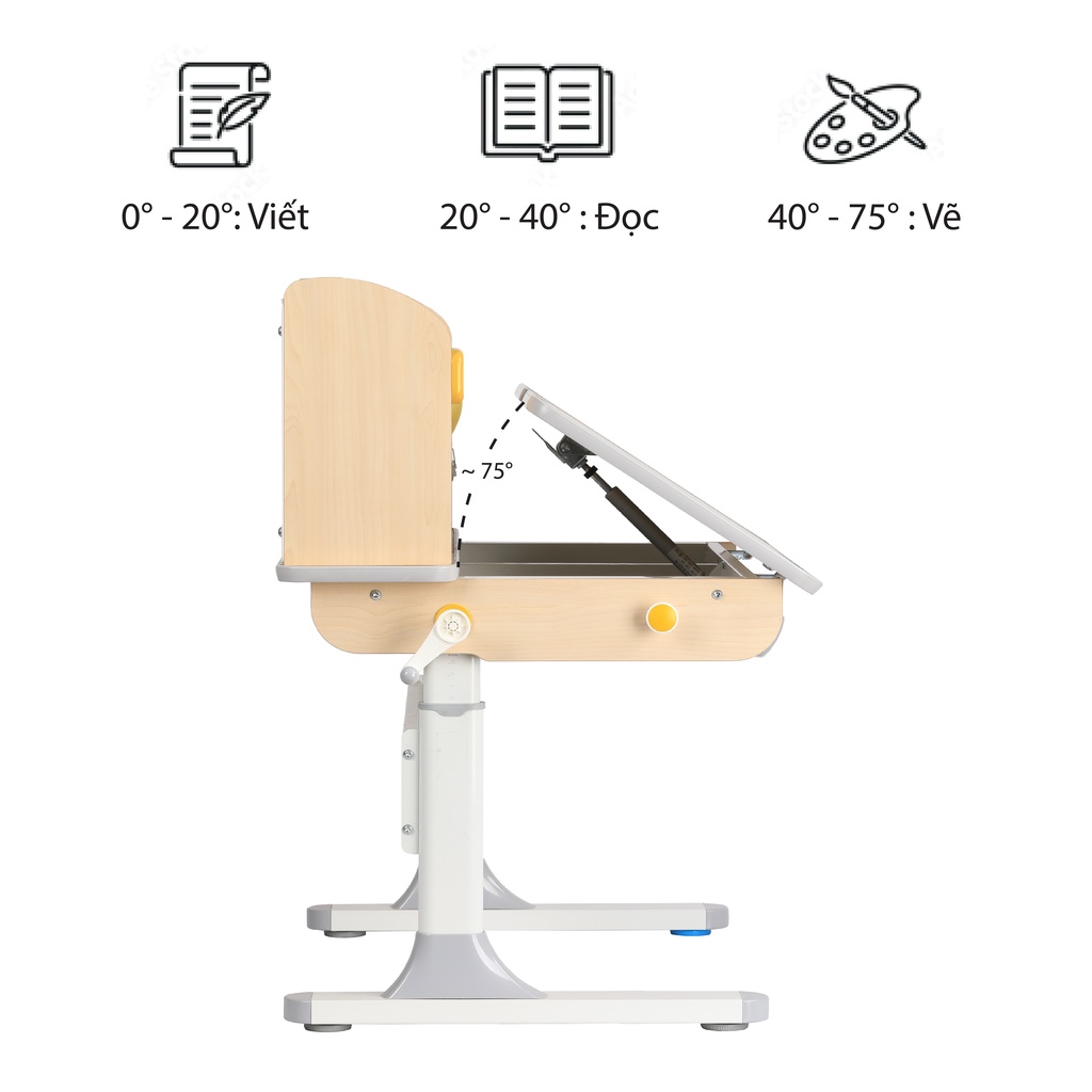 ✅ Độ nghiêng mặt bàn thay đổi từ 0 - 75