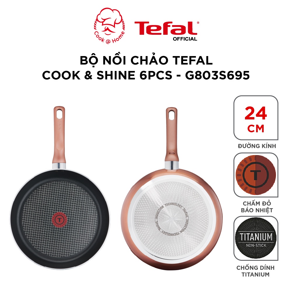 - Bộ nồi chảo Tefal Cook&Shine 6pcs G803S695 được tích hợp CÔNG NGHỆ THERMO-SIGNAL Báo nhiệt thông minh, sẽ cho bạn biết nhiệt độ lý tưởng để nấu ăn ngon.