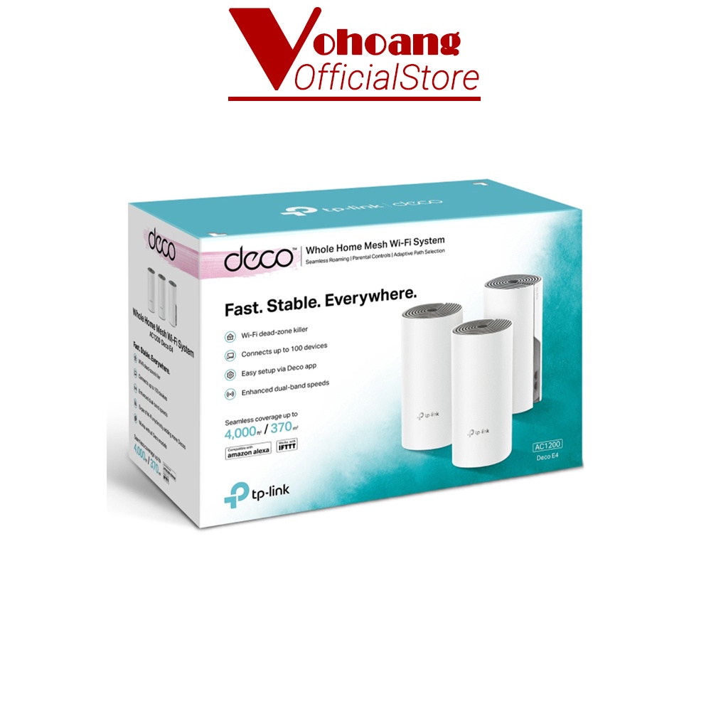 Máy tính & Laptop > Thiết Bị Mạng > Bộ Phát Wifi || [Mã BMBAU200 giảm 7% đơn 699K] Hệ thống Wi-Fi Mesh Cho Gia Đình TP-LINK Deco E4 Pack 3 chuẩn AC1200Còn hàng
