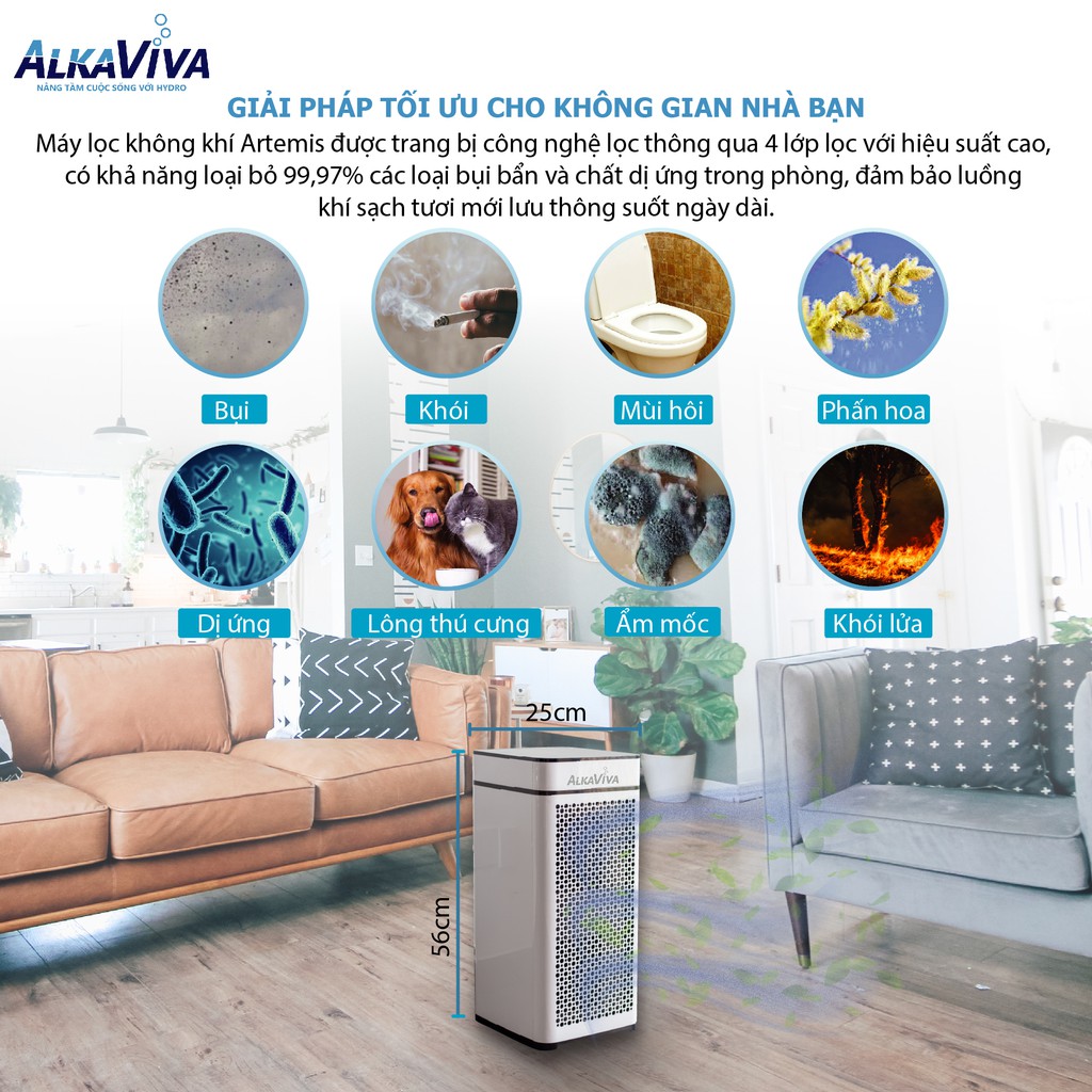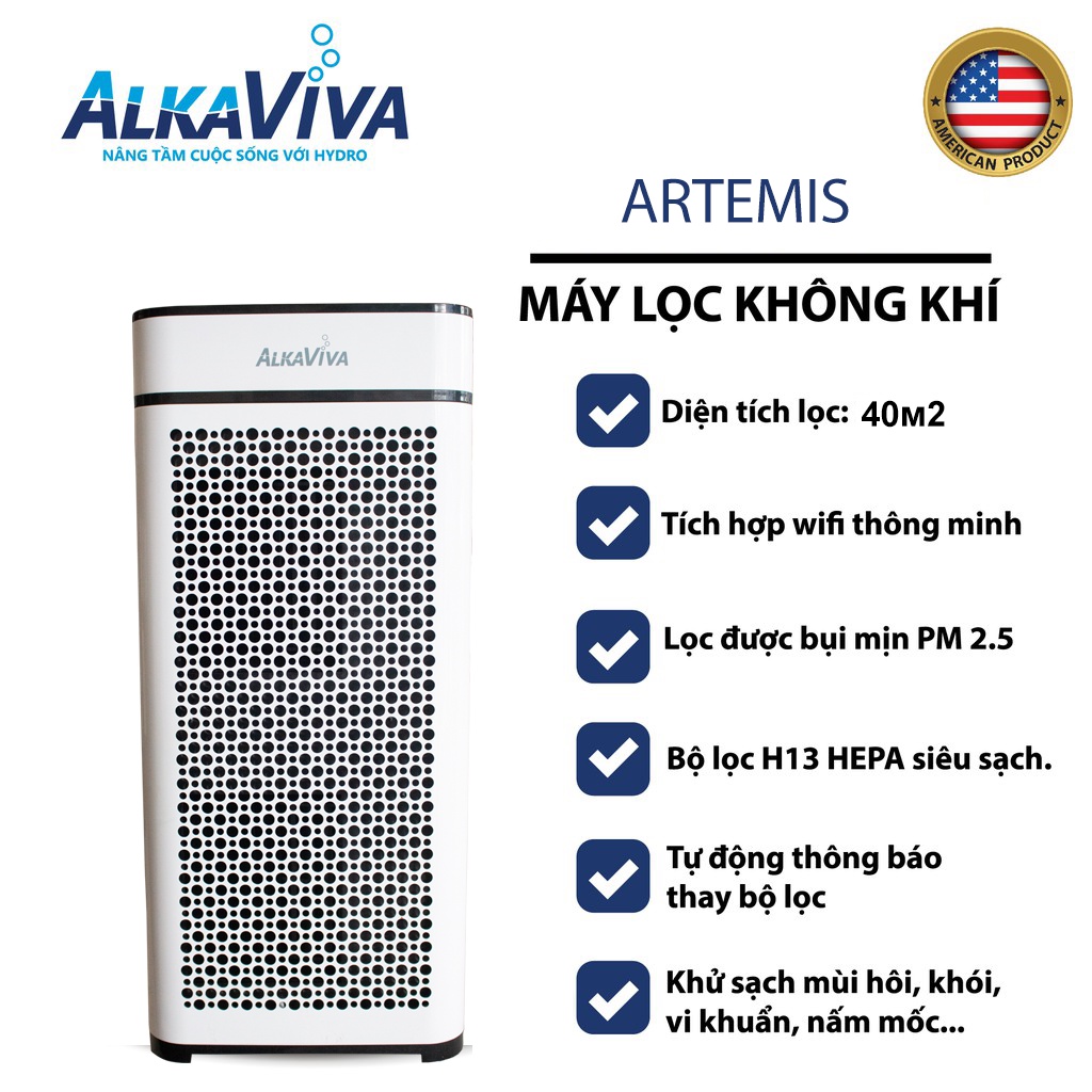 Giới thiệu [Mã ELHA10 giảm 6% đơn 5TR] Máy Lọc Không Khí AlkaViva ARTEMIS Diện tích Lọc 40m2 - AKVMLKATM45