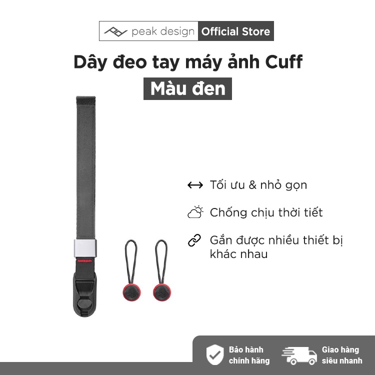 Dây đeo tay Cao Cấp Peak Design CuffDây đeo tay Peak Design Cuff là một dạng dây đeo thao tác nhanh cho phép bạn giữ máy bộ máy ảnh bằng cách đeo dây vào cổ tay. Với khả năng điều chỉnh kích thước cho phù hợp với cổ tay giúp cho người sử dụng thoải mái hơn trong mọi hoạt động, kèm theo đó là hệ thống kết nốiAnchor Linksgiữamáy ảnh và dây đeo đảm bảo độ bền và chắc chắn cũng như thao tác tháo lắp nhanh cho máy ảnh.