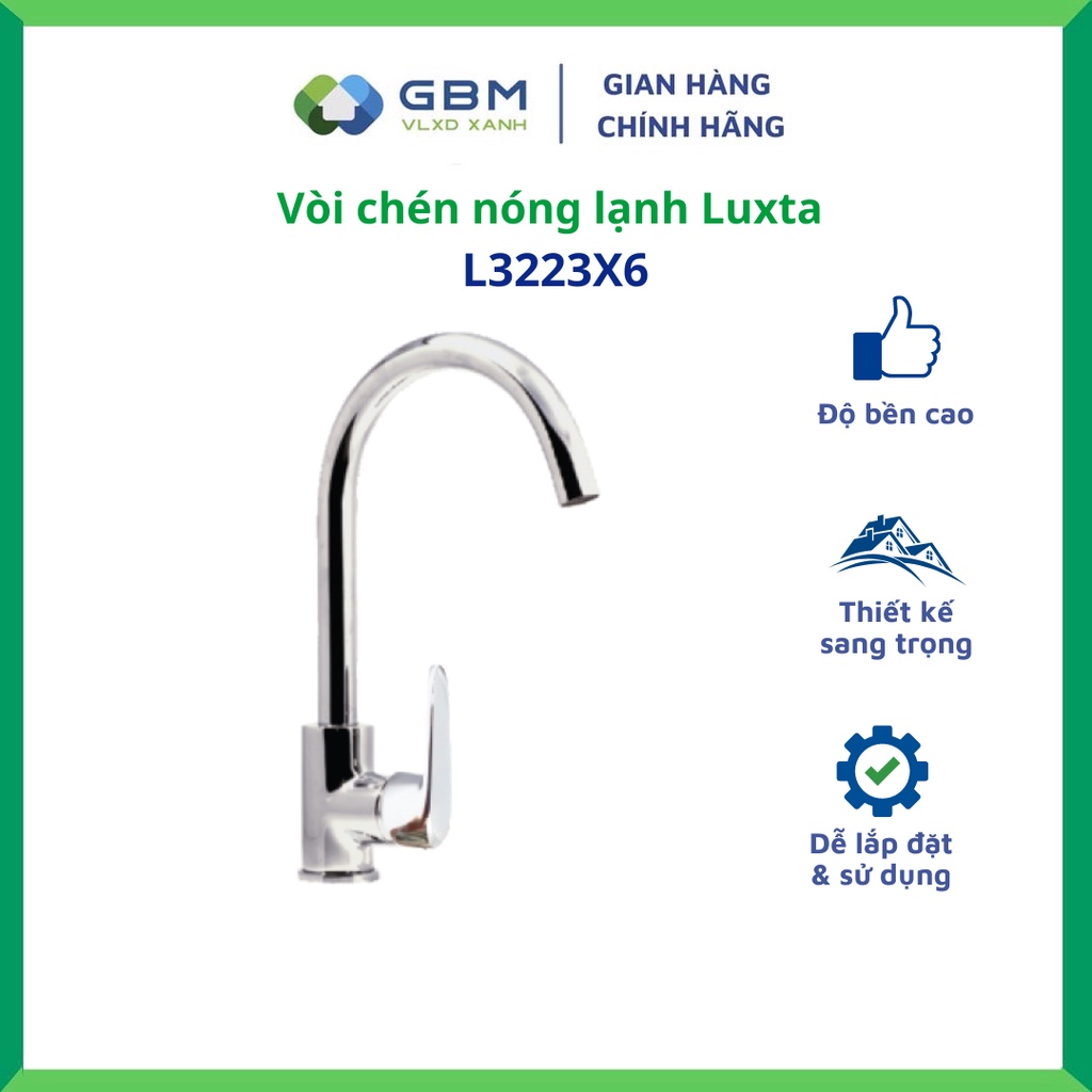 - Vòi Chén Nóng Lạnh Luxta L3223X6 có thiết kế hiện đại, sang trọng phù hợp với không gian phòng bếp nhà bạn