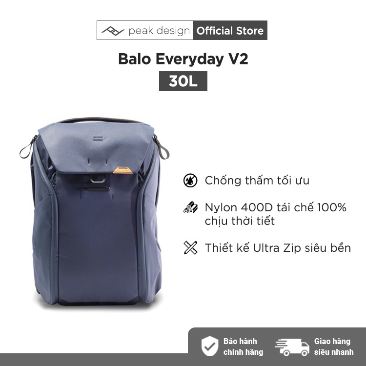 Balo Máy Ảnh Cao Cấp Peak Design Everyday 30L V2Peak Design là một thương hiệu nổi tiếng và từng đoạt giải thưởng cho việc chế tác balo mang theo hàng ngày và đựng máy chụp ảnh. Với Balo Peak Design Everyday mới, được cải tiến và thiết kế dựa trên chức năng, sắp xếp, mở rộng và bảo vệ. Phần cứng MagLatch độc đáo cung cấp khả năng sử dụng hàng đầu nhanh như chớp, với khả năng truy cập hai bên thông qua hai UltraZips chống chọi với thời tiết.