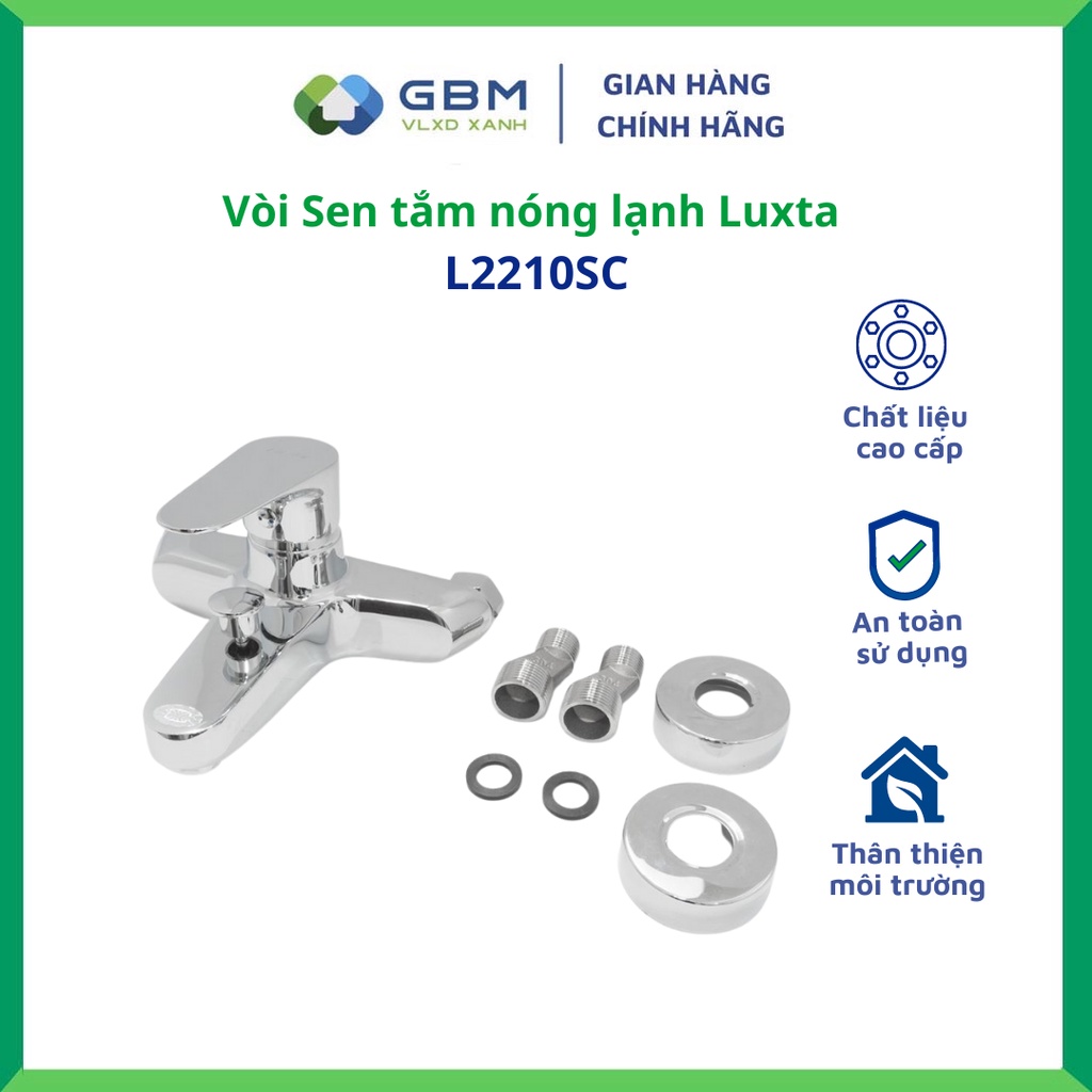 - Vòi Sen Tắm Nóng Lạnh Luxta L2210SC sử dụng nguyên liệu đồng thau nguyên khối cao cấp không chứa chì giúp bảo vệ môi trường và sức khỏe người tiêu dùng, ngoài ra còn có tác dụng chống trầy xước, chống bám bẩn tối ưu