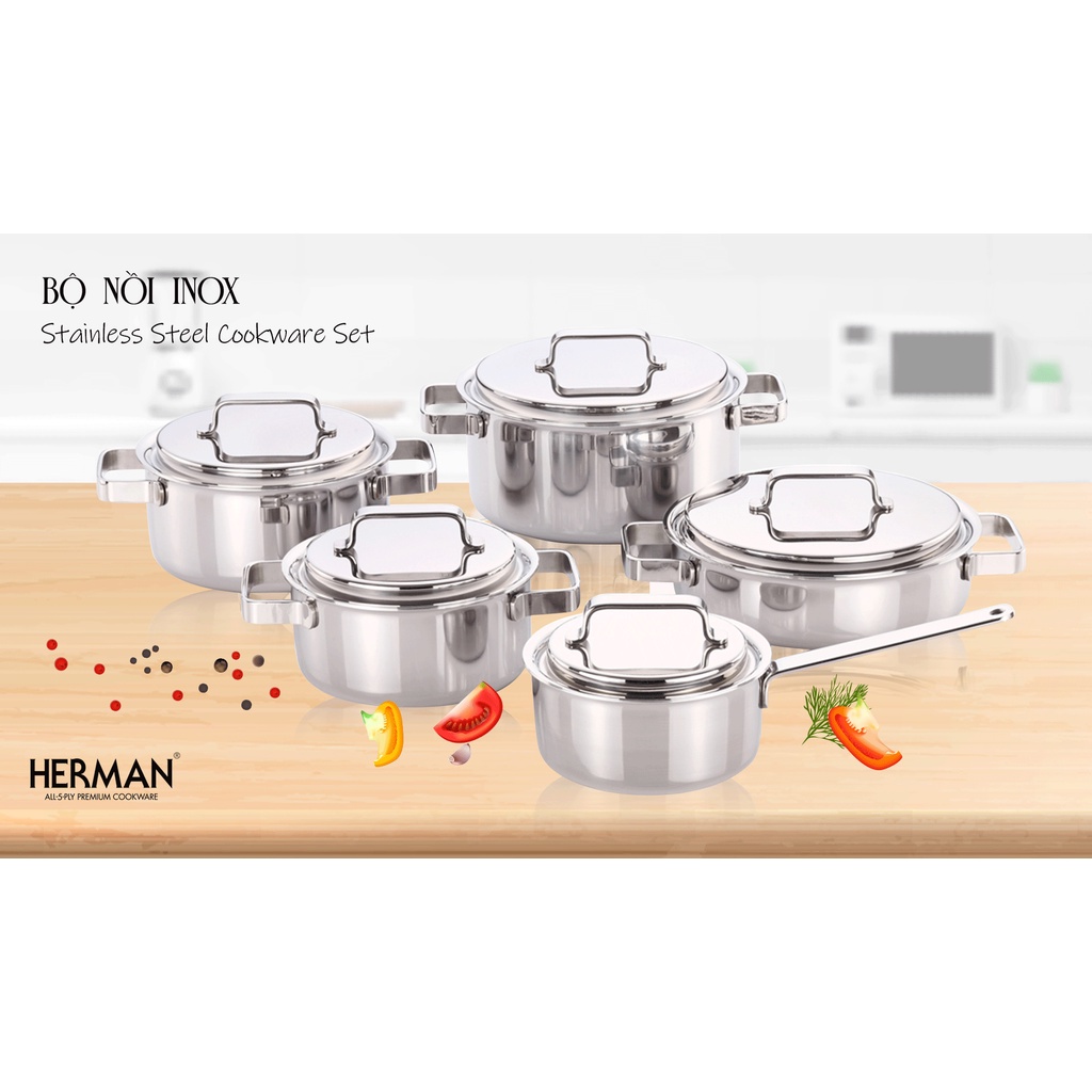 - Đối với các sản phầm của Herman 5 lớp, toàn bộ thân và đáy của sản phẩm có cấu trúc năm lớp liền nhau từ thân xuống đáy dẫn nhiệt nhanh - Giữ nhiệt cao - lưu chuyển nhiệt đồng đều trên sản phẩm.