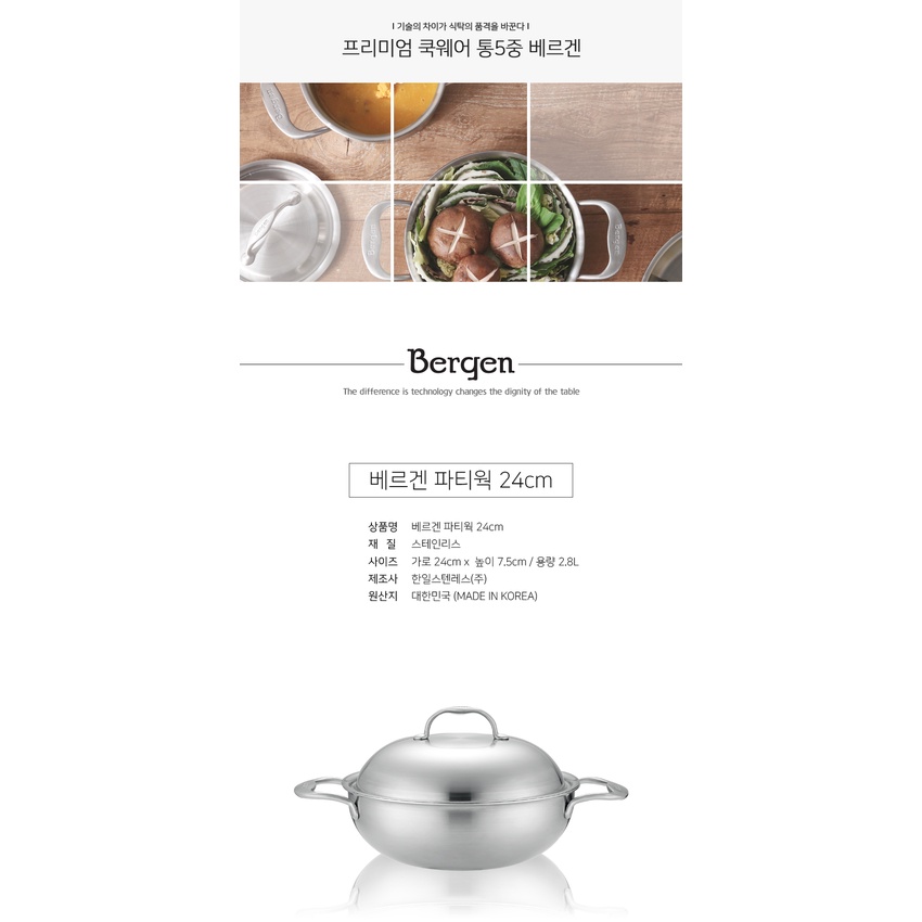 Chảo lẩu Party Wok 5 lớp liền đáy Bergen 24cm* Đặc điểm nổi bật: